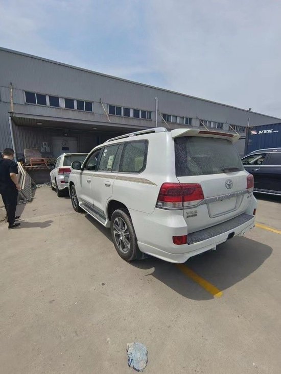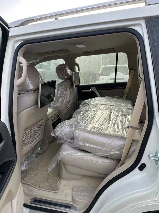 21款中东酷路泽5700 现车手续齐 VX-R Gnand Touning 套件版 颜色:白车/米内饰 新款中网 21款、12气囊、米色真皮菱形座椅、后排娱乐,360环影 285/50R20 刀锋轮、天窗、一键启动、智能卡、冰箱、遥控启动、航踏、GTS前后包围、后门GTS标、自动大灯、LED氙灯、电动折叠后视镜、巡航、主驾驶座椅电动调节、车身稳定系统、上坡辅助、蠕行、中央差速锁、防碰撞预警系统、胎压监测、二挡起步、驾驶模式选择、桃木真皮多功能方向盘、桃木内饰、大屏导航、后排10.1英寸头枕屏、尾翼带刹车灯、拖勾罩、迎宾灯、液晶仪表、防撞条、行李架、内门把手镀铬、前2后4电眼、大灯高度自动调节、三区空调
