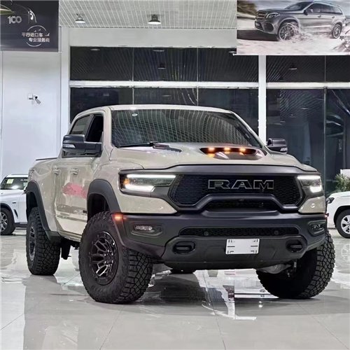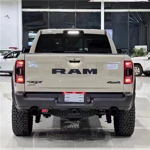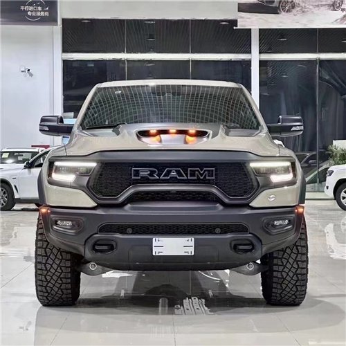 2023款道奇公羊霸王前倾式车头,相较中规中矩的家族设计无疑多了几分对路面的侵袭感,眼神中没有透露出一丝的活泼神韵唯一展现出来的只有凶狠,前杠是铁质前杠带拖钩,散发这金属气息,沉稳大气,作为最畅销的车型拥有着极富侵略性的前脸。