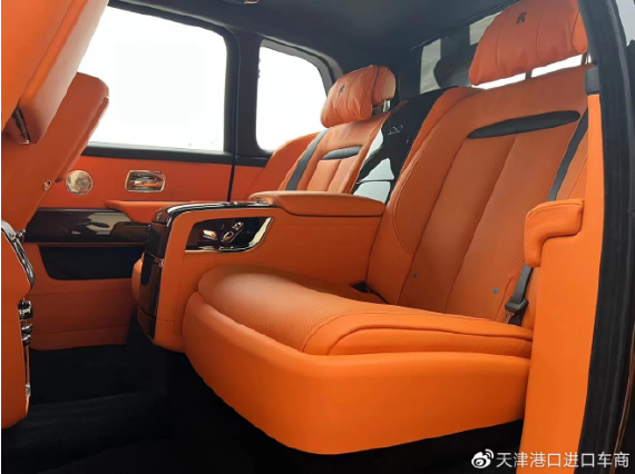 22款欧规库里南Black Badge 黑/橙 四座、流星顶、腰线、后排娱乐、定制内饰、定制音响、驾驶员辅助系统、野餐桌、外部不锈钢包装、前后通风加热座椅、后排按摩座椅、羔羊毛脚垫、RR头枕刺绣、 VIN牌、仪表台顶针式缝线