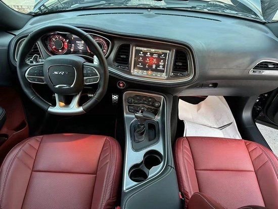 道奇地狱猫SRT采用了道奇家族最新设计理念,整体造型更加运动,仪表盘采用双仪表盘加液晶显示屏的组合设计,中控台采用分体式,并配有中央液晶显示屏。拥有运动化的氛围,包括底式方向盘、运动座椅、仿碳纤维内饰部件及铝合金装饰面板。