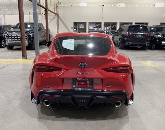 丰田GR SUPRA手动档车尾采用一体式尾翼设计,并且后面翘起幅度很大,另外两侧是凯美瑞式的独特钣金结构,整个尾灯比较小巧。车尾下包围带有扩散器,两侧双出排气布局加上熏黑处理的细节运动感满满。