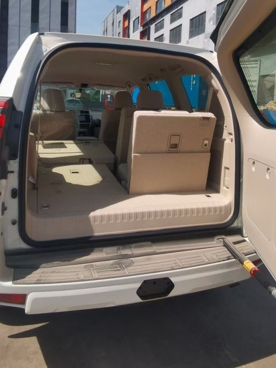 配置:2气囊、17铝轮、踏板、电动折叠后视镜、黑门把手、普拉多字母彩条、半多功能方向盘、底挂备胎、7座 、脱钩