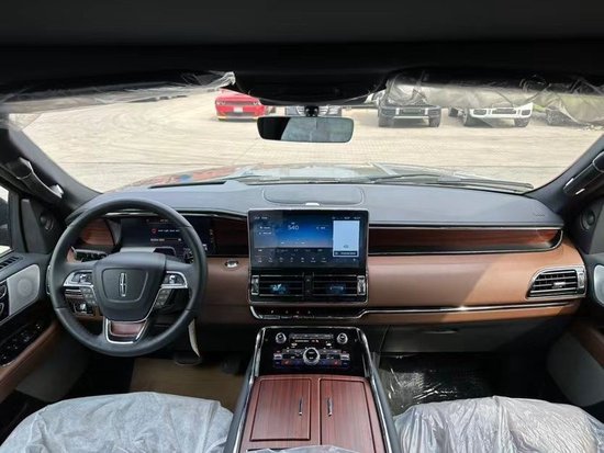 2023款林肯领航员、内饰方面非常奢华,多功能方向盘中控台的造型与宽大的车身相呼应。新车全部真皮裹座椅内饰采用桃木搭配设计,高贵典雅。加高加大的车身除了增加内部空间外,还给人营造一种尊贵典雅的感觉。最新林肯领航员新车采用了2+2+3的座椅布局,第二排采用了两个独立座椅,座椅内侧均配有扶手舒适度超强。