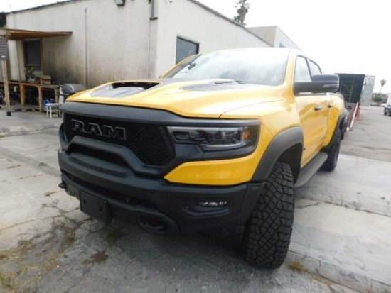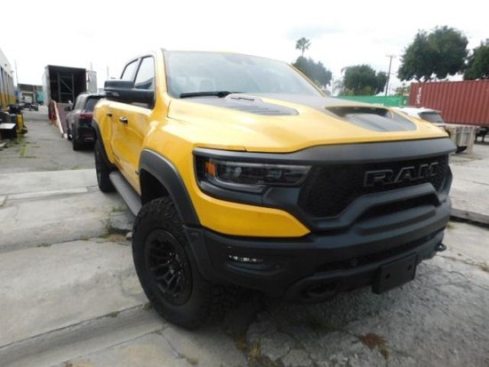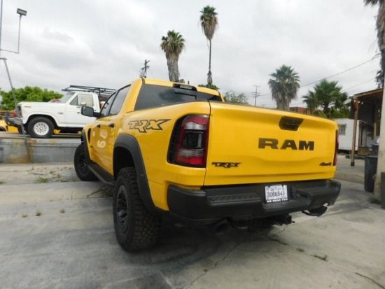 道奇霸王龙传承了道奇Ram家族高大威猛的造型设计,同时细节部分融入了更多高性能元素,包括经过黑化处理的前格栅,引擎盖两侧的黑色进气口,以及为了容纳巨大的机械增压器而设计的通风口,前倾式车头,相较中规中矩的家族设计无疑多了几分对路面的侵袭感。眼神中没有透露出一丝的活泼神韵,唯一展现出来的只有凶狠。前杠是铁质前杠带拖钩,散发这金属气息,沉稳大气。
