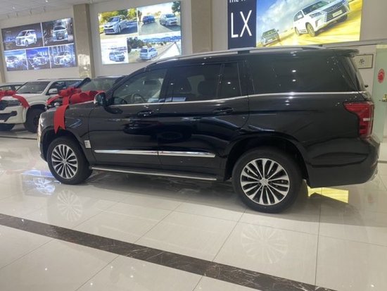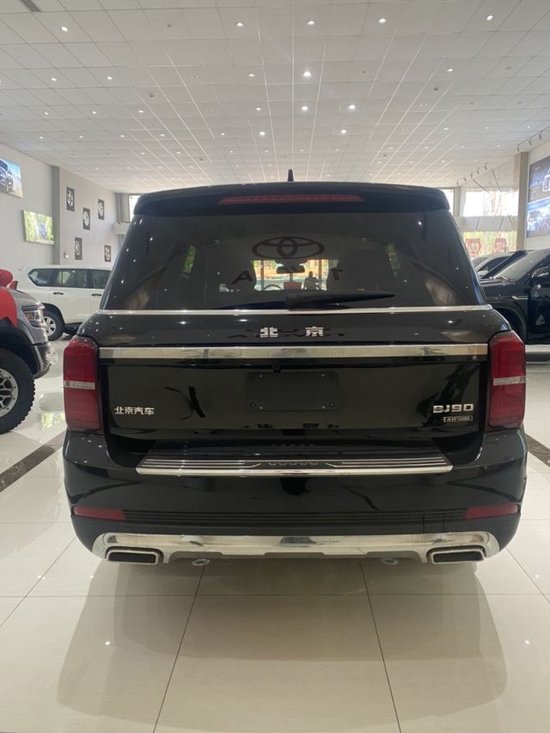 北京BJ90基本延续了旧款车型的造型设计,前脸的进气格栅依旧通过宽厚的镀铬装饰填充,形成五孔造型,底层则是采用黑色的网状结构包裹。两侧平行四边形样式的大灯组与进气格栅融为一体, 灯腔内配备氙气远光灯光源,而L型LED日间行车灯则位于灯组顶部。前包围区域通过棱角分明的镀铬条装饰,呈现出三段式布局,梯形样式的下进气口内部同样采用黑色网状结构填充。