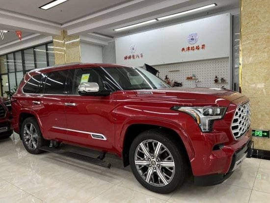 23款丰田红杉拥有一个非常庞大的身躯,采用了隐藏式的A、B、C柱设计,营造出悬浮式车顶的样式,外后视镜壳还有银色与黑色可选,提升了该车的时尚感。另外,新车腰线贯穿整个侧面,并在前后翼子板处采用内凹式设计,营造出了极其宽厚的视觉效果,再搭配六螺栓孔固定的20英寸密条辐轮圈,整体搭配展现出了陆上霸主的气息。