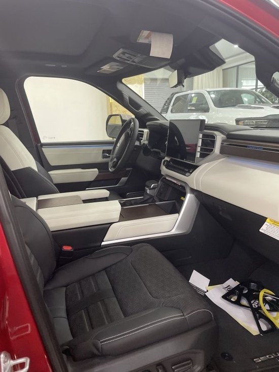 23款丰田红杉的内饰的实用性与空间利用率在这代红杉身上均得到提升,坐进车内,第一感受就是大,前排的两个大尺寸的真皮座椅,自带打孔透气皮料,四幅式多功能方向盘,握在手里的质感不错,转向也没有想象那么重,T型的中控平台,尺寸方面也比一般车型大不少,14英寸的中控触摸屏,集成了几乎所有的影音娱乐以及车身控制功能。