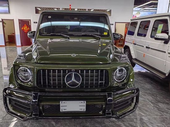 奔驰G63 (配置|询价)的车身造型粗犷硬朗,前脸直瀑式的中网非常大气,两侧是圆形的几何多光束MULTIBEAM LED大灯,照明效果绝对出色。粗犷中增添了几分精致。全新奔驰G级 (配置|询价)仍然保持专业越野车的定位,同时采用了传统的“方盒子”造型设计,但是细节部分变得更加细腻。新车型尺寸有了明显的提升,长宽高分别为4817×1969×2187mm,轴距为2890mm。