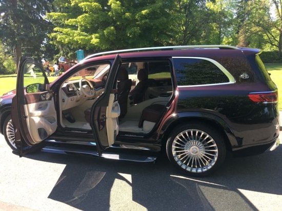 2023款全新迈巴赫GLS600当车门打开时,车身会自动降低25毫米,首次搭载的镀铬电动伸缩行车侧踏板会在1秒内安静伸出,配合侧裙板上的LED灯带照明,循“礼”而为,为宾客提供仪式感十足的优雅登场。尤其是侧基板,不仅仅是点缀而已。作为标准,他们包括一个自动摆动的运行板,方便乘客进入和离开车辆。由高光泽铝与防滑橡胶条制成,超过两米长的踏板是USP的梅赛德斯迈巴赫GLS。