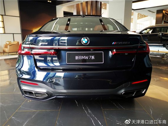 全新宝马750LI尾部运用了贯穿式的灯带进行装饰,辅以镀铬饰条进行装饰,LED尾灯组整体呈现出L型的设计造型,在点亮之后也是有着不错的辨识度,同时还采用了当下比较流行的分体式的横向布局,拉宽了整个车尾部的宽度,看起来也是比较厚实的,也是有着比较不错的立体感,尾部下方的双边单排排气管以及下方护板也运用了大量的镀铬饰条进行装饰,提升了整车的豪华档次感。