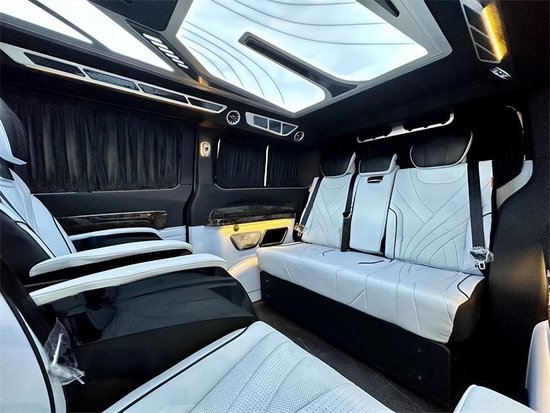第3排电动调节,配有无线充电,它既可以是一个沙发床,也可以由两个独立的座椅所组成,两个款式两种布局,可满足不同用车的需求。双侧电动滑门,可选装电动后尾门。车顶独家开版的高达顶灯,冰蓝、极光白、暖橙三色可调,亮度调节有三档,顶部还配备了24寸的智能液晶显示屏,可以同步车辆的车速、时间。进行智能办公、上网追剧等,满足你行车空间的所有娱乐休闲需求。
