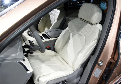 新添越长轴距版缝线采用数字化工艺进行优化设计。经过重新构思的菱形纹理更为修长,以椅背肩部位置的中心向外对称延伸至两侧车门,与修长的车身相呼应,强化了车辆的整体空间感。椅背顶部菱形设计采用数字化工艺与精密技术打造而成,菱形格内的真皮饰面引入直径小于1毫米的穿孔设计。完成机器穿孔后的真皮区域还将由专门的刺绣机缝制出菱形格图案。另外,新添越长轴距版可为客户提供数万亿种配置组合,其中仅内饰配置组合就达240亿种。