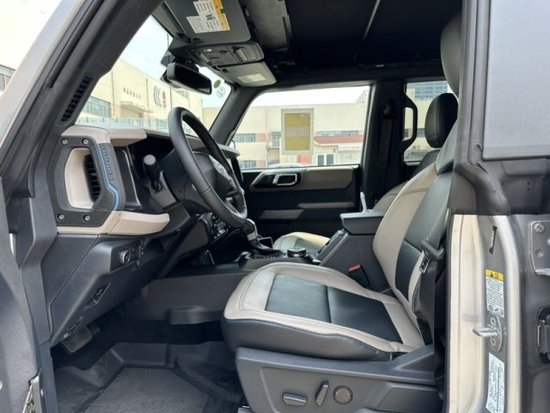 野地版标配:大脚包,中级包,LED大灯带LED信号灯,LED尾灯,后保险杠一粉末涂层钢,前保险杠一粉末涂层钢,碳化灰格栅带白色“BRONCO ”,岩石导轨,橡胶地垫冲洗,升级底板,拖钩:2前,1后,前后地毯垫,高级仪表盘,地形管理系统7种驾驶模式,前排头顶地图灯,Badlands悬架,HOSS 2.0悬挂系统带倍适登减震,高级四驱系统,前后轴差速锁,4.7前后桥锁最终传动比,浅棕黑织物座椅,17寸防脱圈轮毂,LT315/70 R17泥地胎,自动远光灯,LED雾灯,日间行车灯(DRL),软顶,可拆卸车门和车顶,无框车门,尾门手动150度开启,黑色门把手,外后视镜:加热/电动调节/手动折叠,内后视镜:手动防眩目,手动单区空调,隐私玻璃,遥控钥匙,一键启动,8寸中控触屏,6扬声器,Apple CarPlay/Android,预碰撞辅助带自动紧急制动,ABS/ESC/RSC/TPMS,前中央控制台带扶手箱,主副驾遮阳板化妆镜,真皮换档旋钮,真皮方向盘,方向盘手动4向调节,拖车摇摆控制,定速巡航,定速巡航,倒车影像,6气囊(主副驾前,主副驾侧,侧气帘),分时四驱,主副驾手动6向调节,备胎。