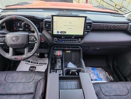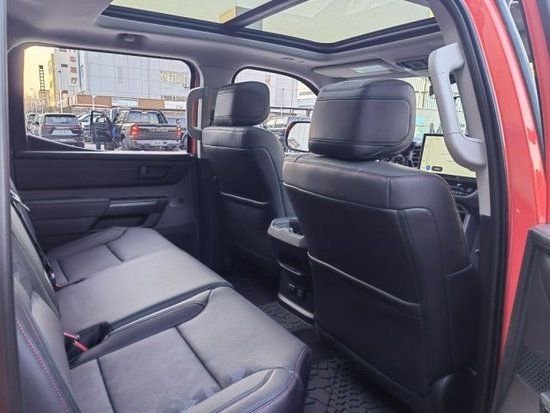 2023款丰田坦途的方向盘增加红色回正标,配备有大尺寸的悬浮式中控屏和JBL音响等。除了个性化的外观之外,这款全新的丰田坦途车型还采用了最新的悬浮式车顶以及最新的宽体车身设计,可以说在中大型皮卡领域,这款车型在外观造型方面显得很有新意,就算是与新款的福特猛禽 (配置|询价)(配置|询价)车型相比,在气场方面也丝毫不落下风。