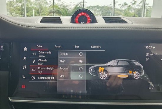 2023款保时捷卡宴车内,经过重新设计的操控区域简约时尚,一体式操控台配合拉丝铝合金装点,让整个空间豪华感倍增。通过调节中控台上的按钮,选择将空气悬挂升到最高位置。公司名称:天津豪车汇国际贸易有限公司 公司地址:天津港保税区国际汽车城4000平米独立展厅 联系人电话:18526401818(同微信)王经理 联系人微信:15502210555(同微信)王经理