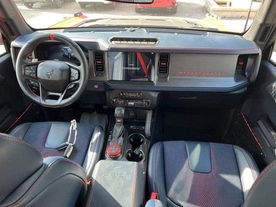 23款福特烈马Bronco 3.0T四门Raptor猛禽车内采用硬朗的设计风格,中控台设计主次分明且有层次感用料也厚实。多功能方向盘造型运动,中控屏幕采用内嵌式的设计增添了车内的时尚感,按键布局合理档把设计精致座椅宽大厚实空间宽敞实用性强。