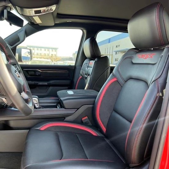 道奇公羊霸王龙做工则完全摆脱了美式的粗糙感,边缘、接缝都处理的很精细,真皮座椅各自独立,配有加热、按摩等舒适功能,每个座椅独立配一个操控手柄,各项功能由乘坐者自己控制。道奇公羊皮卡车型全部座椅均采用真皮包裹,前排还配备了十分实用的运动座椅。2023款道奇公羊霸王龙中控台的设计简洁硬派,符合公羊的气质,仪表盘底边有花纹,则更加凸显了这款车的文雅性,软性材质的仪表台设计,摸上去手感非常舒服,并无些许生硬之处