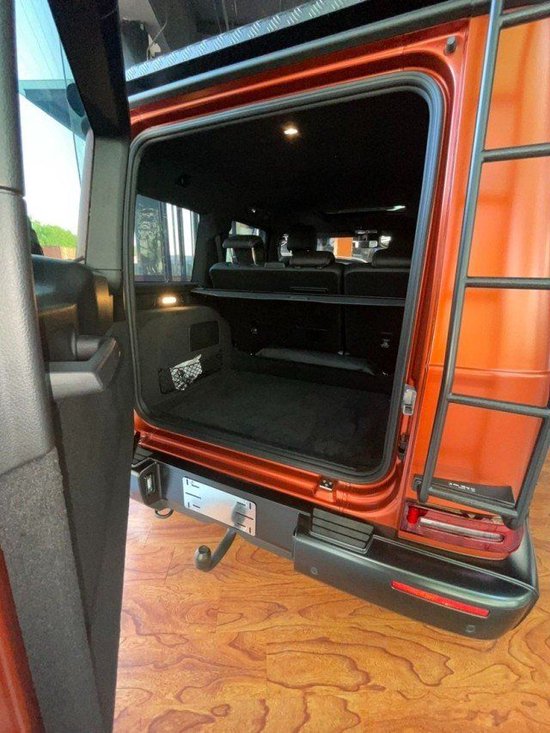 限量颜色professional Line专业版,暴力哑光古铜橙/黑,专业版带梯行李架 18寸专业越野胎、雷达测距 、led大灯 、越野灯罩 、远程遥控预热+方向盘加热 、钢琴漆+熏黑木纹内饰、天窗、运动座椅 、柏林之声高级音响 、隐私玻璃、64色内饰氛围灯、后排娱乐预留、熊猫暗夜 、黑色撞顶 、拖钩 、自适应阻尼悬挂、前后防撞钢结构。
