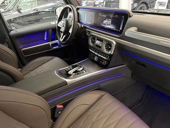 23款奔驰G400D内饰方面豪华气息浓厚,仪表盘采用双炮筒式设计,再配合中间的液晶显示屏,粗犷之中又不失精致宽广的空间, 让人瞬间有一种自由奔放的感觉,大量的真皮设计以及一些恰到好处的点缀材质,尽显高贵奢华。