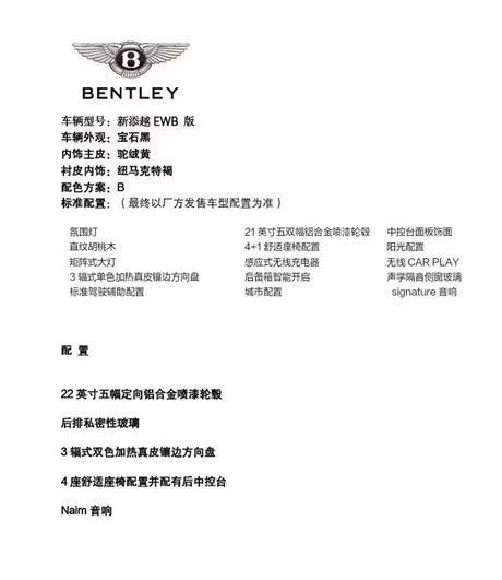 [车型]:宾利 添越 EWB汽油 4.0T V8