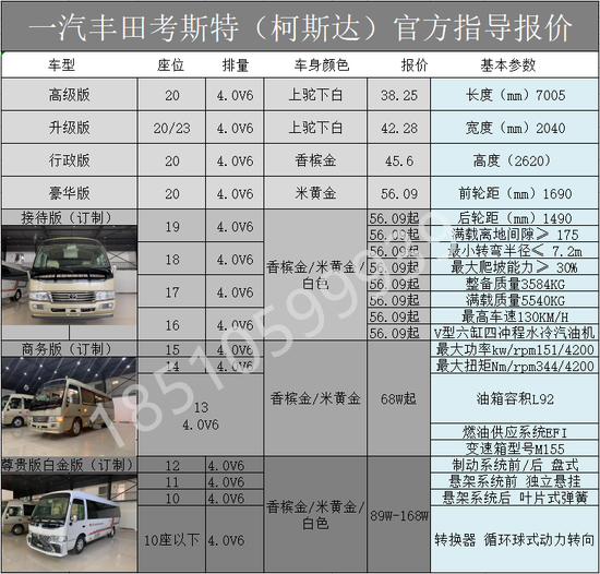 丰田考斯特厂家直销:18510599939 彭经理同微信