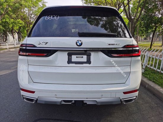 23款宝马X7的尾部造型比较立体,并且尾部的层次感突出,车顶集成高位刹车灯的设计,新车还将会配备鲨鱼鳍天线设计,尾灯组内部条纹式的分割灯带照明后辨识度更高,后保险杠依旧选用银色的镀铬来进行一定的装饰,双边单出的排气管设计使整个尾部充满运动气息