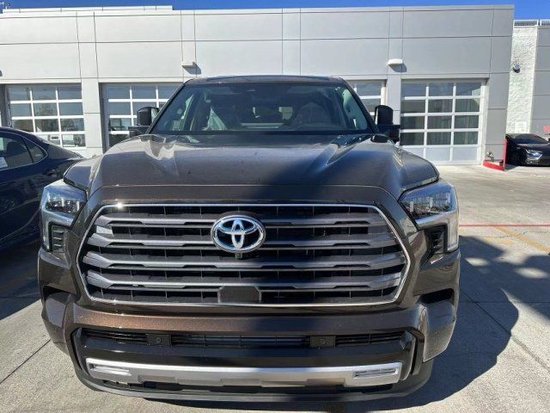 全新23款丰田红杉前脸看起来和坦途基本一样,特别是大尺寸的横向进气格栅以及两侧的L形大灯组,不过格栅和下包围并未像坦途那样是相连的,但却显得车头更加霸气,而且还增加了些层次感。