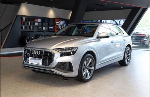 23款奥迪Q8 (配置|询价)外观采用奥迪家族式的设计风格,黑色车漆涂装让它看起来非常炫丽,前脸的视觉中心被硕大的六边形中网格栅占据,作为“灯厂”,奥迪Q8的灯光设计无疑是最让人惊喜的部分之一,整体灯光排布和设计都非常精致,点亮之后非常好看,前包围菱角分明的设计,搭配两侧犀利的散热开口,让它整体看起来多了几分运动气息。