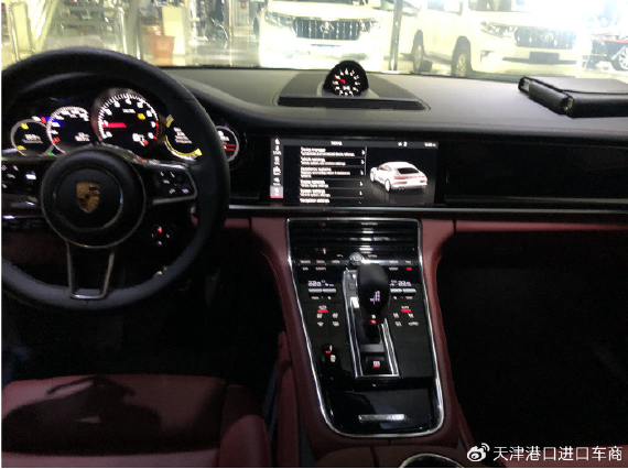 22款保时捷帕纳梅拉4S式仪表盘,具有液晶显示屏的行车电脑显示功能,超大液晶显示屏配有倒车雷达模拟图像。还有可以在每个弹簧中按需提供额外充气量的气动悬挂系统,可自动升起且角度可调的后扰流板,确保了主动空气动力学性能。