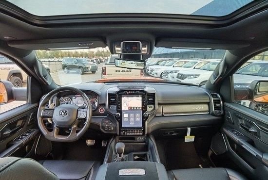 公羊1500 23款 6.2 TRX霸王龙 2级包 喷砂版包内饰采用了家族式设计,整体看上去也非常硬气具有强烈的美式风格,搭配多功能方向盘和大尺寸液晶竖屏并且做工精细。无论是外观还是内饰设计得都非常成功,强悍的外观搭载强劲的动力可以说是当之无愧的越野王者车型。