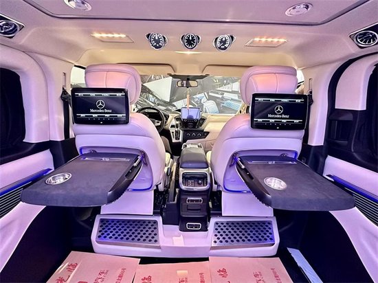 同时车厢顶部有多色可调的顶灯和64色氛围灯,配合隐私玻璃和车身窗帘,共同实现车内明暗度整体可调。后排空调出风口和音响系统也全部集成在车顶上方。与原厂全顺 (配置|询价)追求极致的空间感不同,克蒂帝亚根据消费者对豪华商务车型的情感与功能需求,为商务通勤和家庭出游场景提供自己的最新方案。