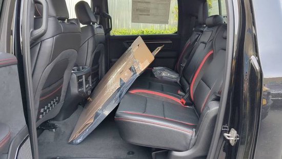 全新23款道奇公羊霸王龙除了强大的动力外,性能版的Ram 1500TRX和越野性同样是一流的,车辆从地板的间隙达到了28cm,接角是30.2,出发角是23.5,通过角是21.9,涉水高是81.28cm,可以对应大部分区间,另外,新车搭载了来自Bilstein的自适应减震器,前后轮的行程达到了33/36cm。