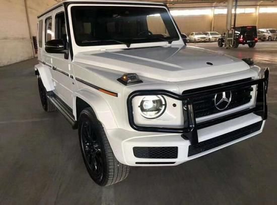 奔驰G550 (配置|询价)是一部纯粹的全地形越野车,粗犷的外观,标志性的三肋镀铬格栅,大大的奔驰车标非常醒目;硬朗笔直的车身线条完全是硬派越野的风格,车头圆形前大灯设计很复古。