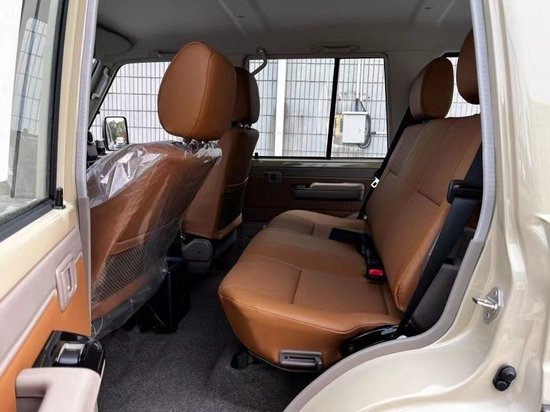 23款丰田LC76 汽油4.0 沙漠黄/棕 配置:绞盘 涉水喉 轴头锁 真皮 5速手动变速箱 130升油箱 分时四驱 前差速器 后差速锁 16英寸合金车265/70R16 刹车:前盘后鼓 前悬螺旋弹簧 后悬板式弹簧 ABS+VSC+BA+EBD+HAC+ATRC 2气囊 彩色保险杠,黄车黑杠)高位刹车灯 、镀铬外后视镜带电动调节 、侧踏板 、数字时钟 5座 、空调 、熏黑大灯、熏黑轮毂、电动门锁 、电动车窗 、收音机 CD 、蓝牙 、2个扬声器 、胎压监测 、USB快速充电 、前雾灯 、后雾灯 、手套箱带钥匙 、徽章、脚垫、黑色轮眉、散热格栅、彩条、桃木方向盘、桃木档把、桃木内饰、真皮座椅