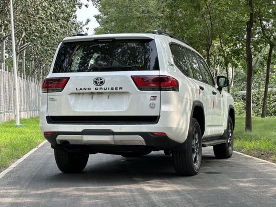 23款丰田酷路泽车身侧面的设计较为简洁流畅,配备大尺寸银色轮圈,车窗外缘配有镀铬饰条,整体依旧呈现了很强的气场。还提供了金属材质打造的迎宾踏板,顶部还可选装金属行李架。车尾为隐藏式排气布局。