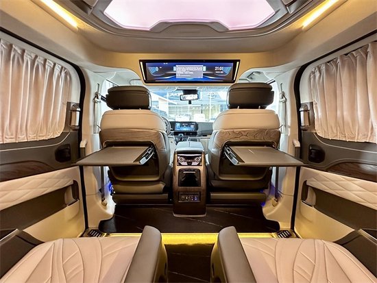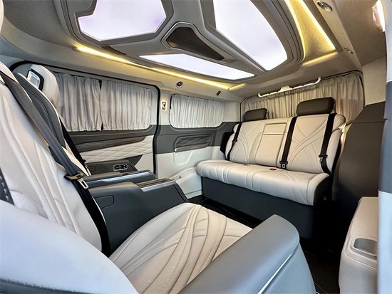采用7座MPV商务车2+2+3的座椅布局。加热仓的两个座椅均带有通风和加热以及电子的调节中央还有扶手冰箱。驻车雷达以及360的全景影像,还带有上坡辅助发动机启停技术,以及我们的定速巡航,在行驶过程中也有很好的安全保障。全车都是真皮包覆从驾驶舱的门板到中控台到顶部,到门板到座椅都做了精细化的包覆。门板上的压花走线也非常的工整,体现了整台车子的品质与质感。