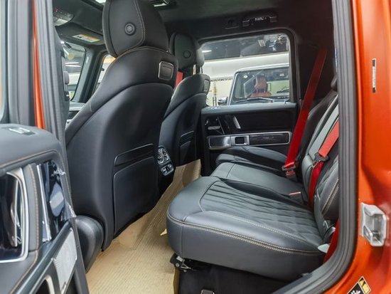22款奔驰G63 AMG后排有独立空调、充电接口、座椅配置了头枕,中央扶手里有杯架。后排座椅可以调节靠背角度,也带有加热功能,支持按比例放倒。