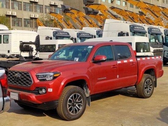 丰田塔库玛配置TRD SR5:8气囊,倒影,车辆稳定性控制、防抱死制动、预碰撞系统,车道偏离警报,动态雷达巡航控制,驻车制动,自动限滑差速器, 6 扬声器,前排座椅加热,织布座椅,电动驾驶员座椅 手动乘客座椅,多功能方向盘,自动防眩目内后视镜,带照明镜的滑动遮阳板 镀铬环绕的黑色前格栅,挡泥板,可变间歇式雨刷,16轮毂 自动大灯,LED日间行车灯,雾灯,