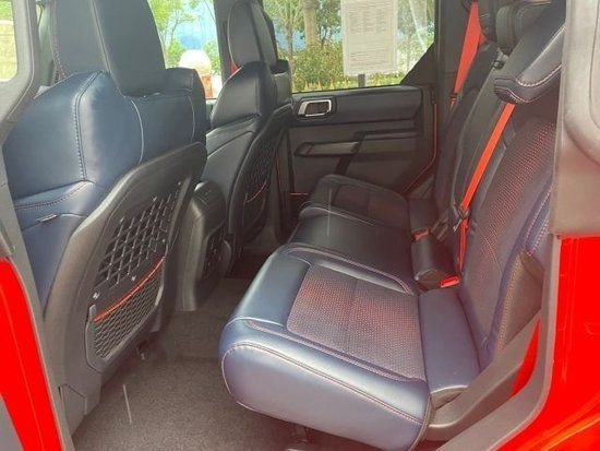 2023款福特烈马猛禽 (配置|询价)版内饰方面,采用特殊材质座椅,表面选用超耐磨且可清洗微绒面料,内部骨架采用特殊形体支撑,防止驾乘人员在越野中左右摇摆。安全带采用醒目的橙色配色,与内饰黑色主色调行程鲜明对比。