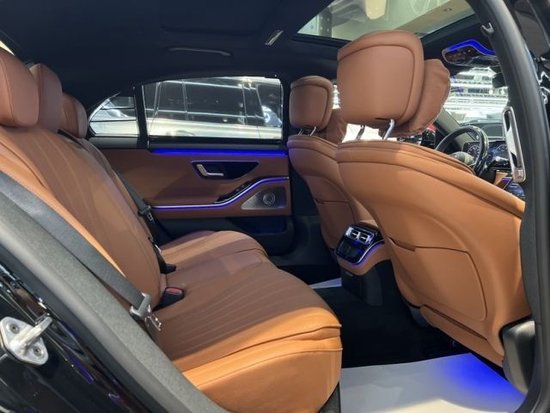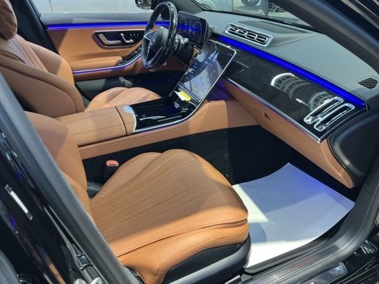 2023 款美规 奔驰 S500 四驱 长轴 AMG 黑/棕 现车 生产日期:23年2月份 选配: 棕色贝壳纹座椅、AMG运动包、暗夜包、21寸多幅轮毂、后轮4.5转向、桃木方向盘、方向盘加热、主动氛围灯、座椅按摩、黑色水晶中控台 标配: 3.0T 9速变速箱 直列6缸 涡轮增压 48V轻混发动机 ,435 匹马力 百公里 4.9秒 车身尺寸:长5.288m宽1.953m高1.504m ,前排座椅腰部支撑调节,电动后窗遮阳帘,12.3寸液晶仪表盘,12.8寸中控OLED触摸屏,主动氛围灯,门槛饰板发光,无钥匙进入,无痕门把 手,电吸门,防紫外线玻璃,全景天窗,实景导航,环影,无线充电,无线电话集成,苹果carplay,安卓汽车,前LED奔驰LOGO,柏林之声环绕3D音响,客舱空气平衡香氛系统,加强气囊系统(第二排气囊),主动刹 车系统,注意力集中系统,主动车道保持,碰撞预警系统,盲点系统,LED主动大灯系统,主动停车辅助,雷达测距,底盘升降