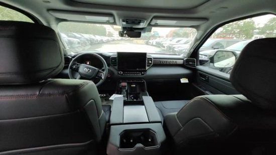 23款丰田红杉的内饰的实用性与空间利用率在这代红杉身上均得到提升,坐进车内,第一感受就是大,前排的两个大尺寸的真皮座椅,自带打孔透气皮料,四幅式多功能方向盘,握在手里的质感不错,转向也没有想象那么重,T型的中控平台,尺寸方面也比一般车型大不少,14英寸的中控触摸屏,集成了几乎所有的影音娱乐以及车身控制功能。