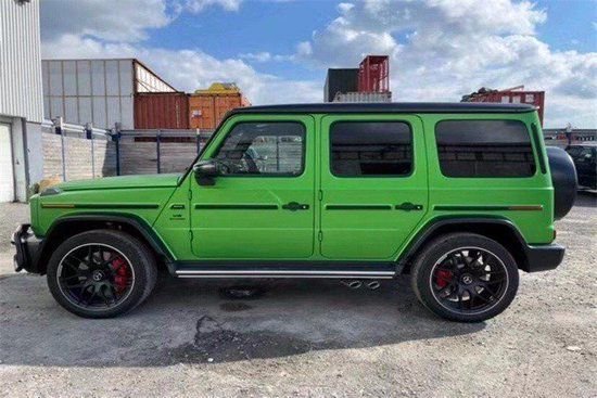 奔驰G63选配夜色组件,夜色组件就是暗夜包,包含了高光黑色车轮、喷涂耀岩黑色漆的附加部件、颜色稍暗一些的照明系统以及深色后车窗。车身侧面硬朗的贯穿式腰线以及机械感十足的门把手,可以使得整车看上去极具力量感。同时,轮毂中红色卡钳可为车身增加一些运动感。尾部依旧为方方正正的设计,圆形外挂式备胎使其辨识度极高。