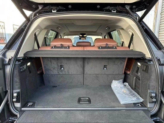 23款宝马X7的第二排为两个独立座椅且带有电动调节功能(7座车型第二排还支持前后14.5cm的滑动调节),上方配备两个头枕,内侧配有座椅扶手,大幅提升了乘坐舒适性。第三排为两个常规座椅,支持一键便捷进入,提供照明灯、杯架等常用配置。后备箱方面,宝马X7配置同样齐全,除包括基础的照明灯、电源、锚点以及挂钩外,还配有后两排座椅的一键放倒、打开功能,大幅提升了使用便捷性。