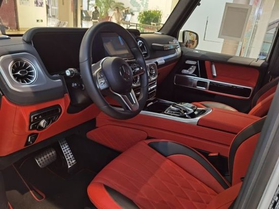 配置:金属漆,独家内饰包PLUS(独家纳帕真皮座椅带菱形缝线,Dinamica车顶内衬,真皮仪表板,脚垫带纳帕真皮包边,主动多轮廓前排座椅带按摩,前座速热,前座通风),AMG包(20寸AMG轮,AMG外观,刹车卡钳带奔驰印标,运动排气系统,AMG运动方向盘),方向盘加热,G制造黑色钢琴漆内饰,