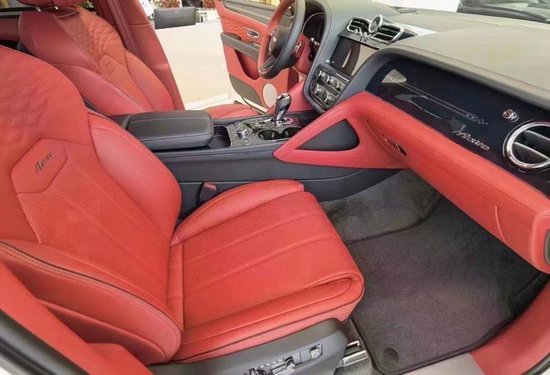 2023款宾利添越加长版 宝石黑/热刺红&黑鲸 木饰:黑钢琴木、选配配置:流光菱形格套件、3幅式双色加热真皮镶边方向盘、宾利徽章座椅刺绣、黑钢琴木、22寸5幅定向喷漆轮毂、4+1舒适座椅。