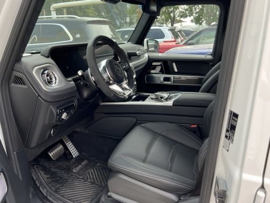 奔驰G63 (配置|询价) 23款 配置:电动天窗、21寸AMG轮毂、雷达测距、多光束LED大灯、LED日行灯、环影、并道、前后电眼、柏林之声音响(15高功率扬声器、后备箱带低音炮)、64色氛围灯、12.3 英寸全液晶中控屏、前排电动座椅带3组记忆、前排座椅通风加热按摩、后座椅加热、三区空调、碳纤维内饰、减震软硬调节、黑色翻毛皮内顶、红色刹车卡钳、amg性能排气系统、自动驾驶控制、napa超细纤维多功能运动电调方向盘、小鼠标、一键启动、自动启停、脚踏板、电动折叠后视镜带奔驰地射灯、隐私玻璃