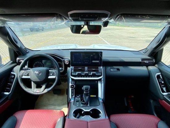 全新兰德酷路泽LC300 GR Sport前脸采用了“TOYOTA”英文车标非常符合这大块头的气质,作为GR Sport版本,全车熏黑套件让这车看上去更具运动感,包括灯组、中网、轮毂、甚至行李架,都是采用了黑色处理。内饰同样有运动化处理,包括GR专属的运动风格座椅,采用全新配色真皮包裹,同时还提供了更加具有运动风格的红色缝线。