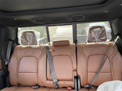 前排电动座椅 后排手动调节座椅(带扶手箱)前排座椅通风加热。真皮座椅加刺绣 主驾驶座椅记忆真木方向盘并带有加热功能哈曼卡顿音响的长角号的中控部分:12寸大屏娱乐系统,新款长角号Logo仪表显示器,(4/8缸切换、紧急闭缸)