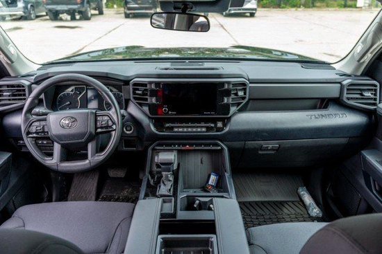23款丰田坦途采用悬浮式中控大屏设计,中控屏从低配版8英寸到顶配版的14英寸,并且还提供有12.3英寸的全液晶仪表盘可供选择,支持CarPlay和 Android Auto系统。值得一提的是,新车全系标配Toyota Safety Sense 2.5智行安全系统,具备拖挂模式、蠕行模式、越野模式等多种驾驶模式。