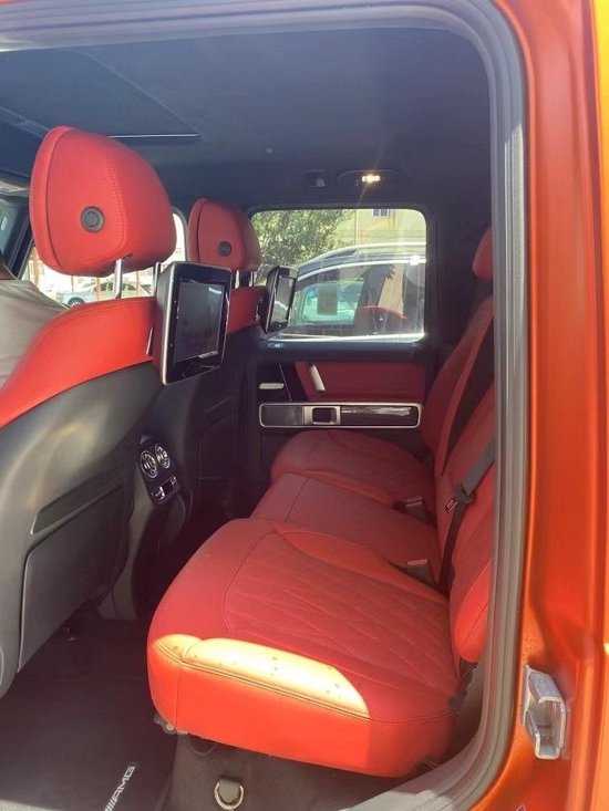奔驰G63豪华精致的真皮包覆提供了足够的舒适性和支撑性,通风和加热功能让乘客免受高温和寒冷的煎熬。中控台多处均采用碳纤维材料覆盖,带彩色TFT显示屏的AMG仪表盘、AMG主菜单和单独的挡位显示器以及采用白色照明的AMG门槛。名贵的选材及精湛的内装令人拍案叫绝。